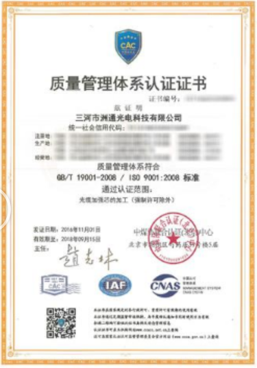 該企業順利通過GB/T 19001-2008/ISO9001:2008認證