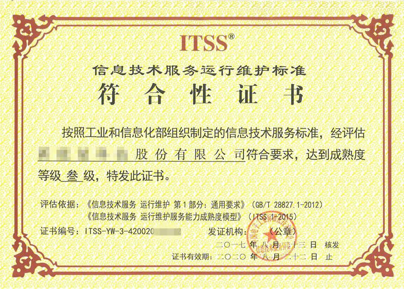 ITSS(Information Technology Service Standards,信息技術服務標準,簡稱ITSS)是一套成體系和綜合配套的信息技術服務標準庫,全面規范了IT服務產品及其組成要素,用于指導實施標準化和可信賴的IT服務。ITSS的內容包含了IT服務的規劃設計、部署實施、服務運營、持續改進和監督管理等全生命周期階段應遵循的標準,涉及信息系統建設、運行維護、服務管理、治理及外包等業務領域 ITSS認證帶來的收益: 1、規范服務產品; 2、建立持續改進的服務管理機制,提高客戶滿意度,搶占市場份額; 3、建立完善的運行維護服務體系; 4、樹立競爭優勢,提高投標成功率 5、使運行維護服務的供需雙方達成統一認識,提高需方對本企業的信任度 6、確定明確的服務范圍;確保服務能力、服務品質的持續提供; 7、保障服務提供的質量等