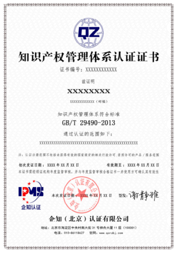 知識產權管理體系認證 知識產權管理體系認證是為規范知識產權認證活動,提高其有效性,加強監督管理,根據《中華人民共和國專利法》《中華人民共和國商標法》《中華人民共和國著作權法》《中華人民共和國認證認可條例》《認證機構管理辦法》等法律、行政法規以及部門規章的規定管理體系認證。 當前社會,隨著經濟的發展和社會主義現代化的建設,越來越多的企業不在是粗放式的發展,很多企業開始不斷為企業注入基業長青的基因。當然,在這個過程中,除了企業本身的發展、企業文化的建設、團隊的壯大外,還要不斷增強企業的核心競爭力,越來越多的企業開始逐漸認識到知識產權管理體系認證對于企業的重要性。建立知識產權管理體系,對企業來說,就是貫徹《企業知識產權管理規范》國家標準。企業知識產權管理規范的國家標準由國家知識產權局制定, 經由國家質量監督檢驗總局、國家標準化管理委員會批準頒布,于2013年3月1日起實施,標準號GB/T 29490-2013。 2、建立并實施知識產權管理體系有助于提升企業領導和廣大職員產權意識,調動職工發明創造的積極性。 3、推動企業產生具備高附加值的自主知識產權的新產品、新技術。通過自己生產銷售或通過技術貿易許可轉讓他人,將給企業帶來豐厚經濟收益。 4、提升企業無形資產價值,在企業融資上市、投資并購及企業出售等資產運作上獲取更大的收益。 5、鞏固企業市場地位,通過貫徹《企業知識產權管理規范》使企業擁有的自主知識產權在銷售市場的地位明顯增強。 6、獲得認證證書,可向科技主管部門申請戰略推進項目、實施計劃等項目。 |